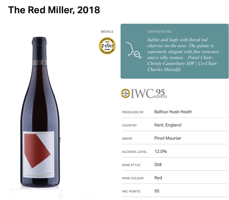 The leaves of Pinot Meunier  (French for miller) look as though they have been dusted with flour which is why it is often known here as Miller’s Burgundy and why Hush Heath call it Red Miller. Some experts thing that despite its outward appearance it is almost identical genetically to Pinot Noir – which makes it all the more interesting that it has beaten its relative to gold.  Interestingly, Simpsons Rabbit Hole Pinot Noir 2018 got a silver medal as did Bolney Estate’s Pinot Noir 2018.