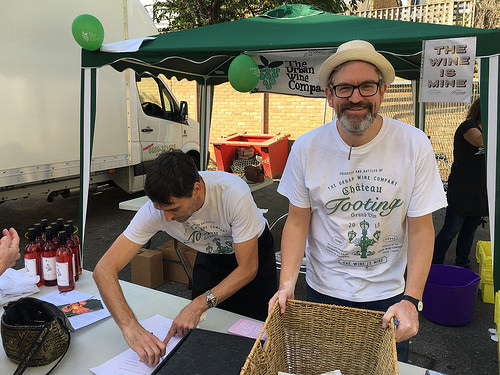 Richard Sharp – who started the project with his friend Paul (photo, right) – managed 8 kilos this year but added that Furzedown Primary School produced some from a Rondo vine and he also got some from the greenhouse at Brockwell Lido. The success of the scheme has prompted the two pioneers to start expanding. They are marketing some of their surplus bottles – those that are not acquired by the growers who have first choice – to local shops, restaurants and markets together with bottles produced by other cooperatives associated with Halfpenny Green. They have their own tee shirts and banners and this Christmas they are hoping to produce hampers with all these in plus a specially selected vine that can be planted in your garden or given to a friend. Yes, Chateau Tooting which started life as a guerilla grape grower is becoming a brand. If this works out and enough people buy the selected vine (maybe a Rondo for red or Seyval for white) then Urban Wine could in a few years produce a single varietal wine in addition to their present Chateau Tooting cocktail.