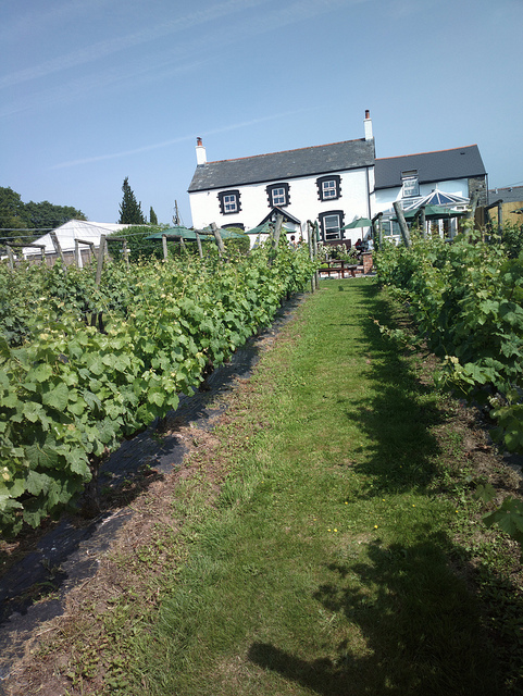 About seventeen miles west of Jabajak is yet another unusual vineyard. CWM DERI (“Valley Oak”) in the Pembrokeshire National Park. It has four shops of its own and in addition to mainstream wines it makes blends of grape wine with other fruits (like wild damson with rosé) and also a wine made from fermented vine leaves which was, er, a bit different.